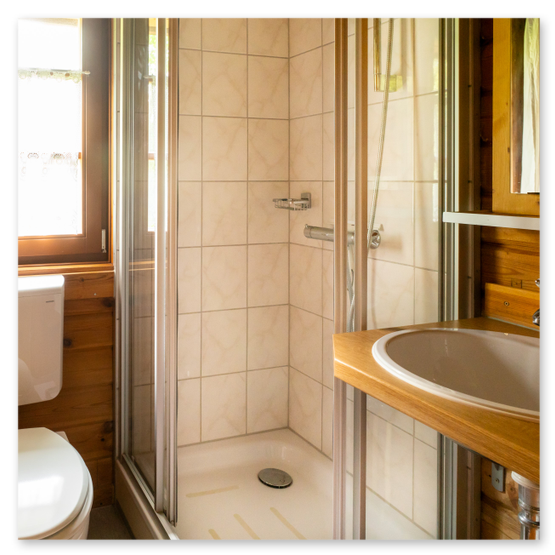 Die beiden Badezimmer grenzen je direkt an die Schlafzimmer an und sind mit Toilette und Dusche ausgestattet. Die Dusche im Ensuite Bad Zimmer 1 ist mit einer hohen Duschwanne ausgestattet und eignet sich daher auch zum Baden von Kleinkindern.